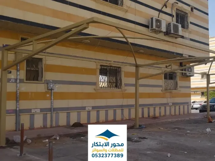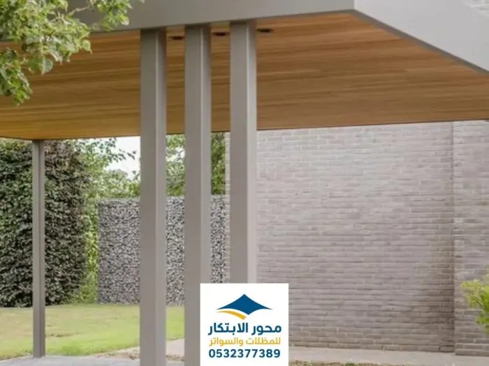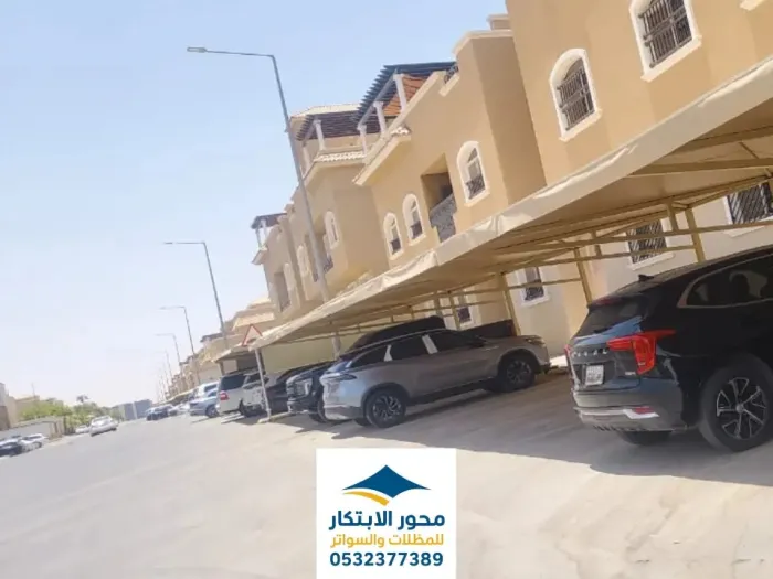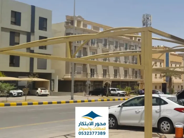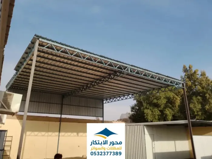 - مظلات سيارات مسطحة في القصيم سطح مستوٍ بزوايا حادة أو دائرية