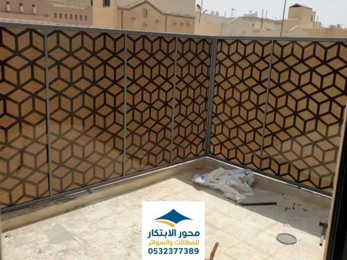 لمسات جمالية وظيفية نوفرها في تصاميم سواتر القصيم كإطارات النوافذ المشغولة، أو تعليق أرفف خارجية للزراعات المنزلية، مما يحوّل الساتر من كتلة جامدة إلى حاضنة للحياة اليومية، تاركاً بصمة تُجسّد فهم عميق لروح الحياة النجدية التي تقدس الفسحة وتحرص على الستر.