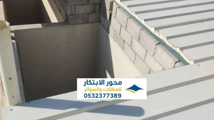 تتعرض الرياض أحياناً لموجات أمطار غزيرة، وهنا تظهر كفاءة الساندوتش بانل الذي نقوم بتركيبه. نظام التعشيق بين الألواح (Male and Female) يضمن عدم دخول قطرة ماء واحدة بين اللوحين. ولكننا نذهب لأبعد من ذلك، حيث نقوم بتركيب "مزاريب" أو قنوات تصريف مياه مصنوعة من الصاج المجلفن والمدهون بنفس لون السقف، يتم تفصيلها لتتناسب مع حجم السقف وسرعة تدفق المياه. يتم توصيل هذه المزاريب بمواسير تصريف خارجية، مما يحمي جدران المبنى من الرطوبة والاتساخ الناتج عن تساقط المياه العشوائي من السقف. إن اهتمامنا بهذه التفاصيل الصغيرة هو ما يجعلنا الشركة المفضلة لتركيب الساندوتش بانل في حي العليا وحي النرجس.
