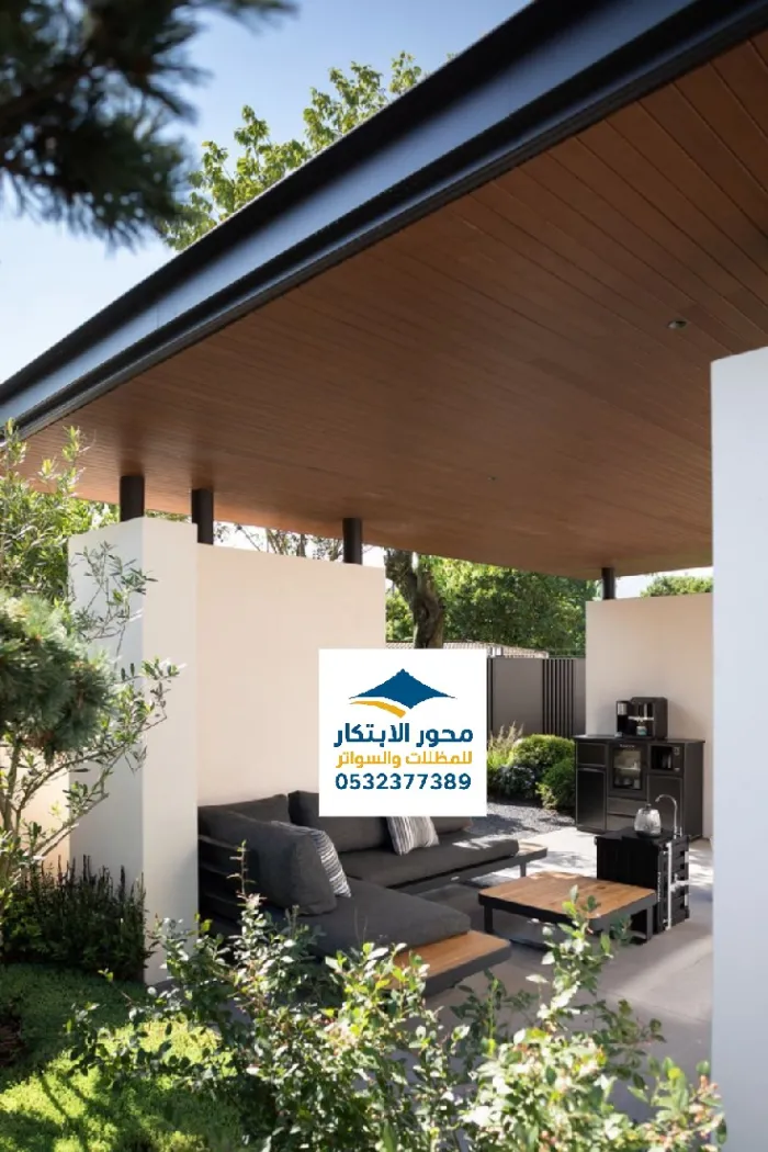 - التصاميم والاشكال: المظلات المسطحة، المظلات الهرمية، البرجولات العصرية.