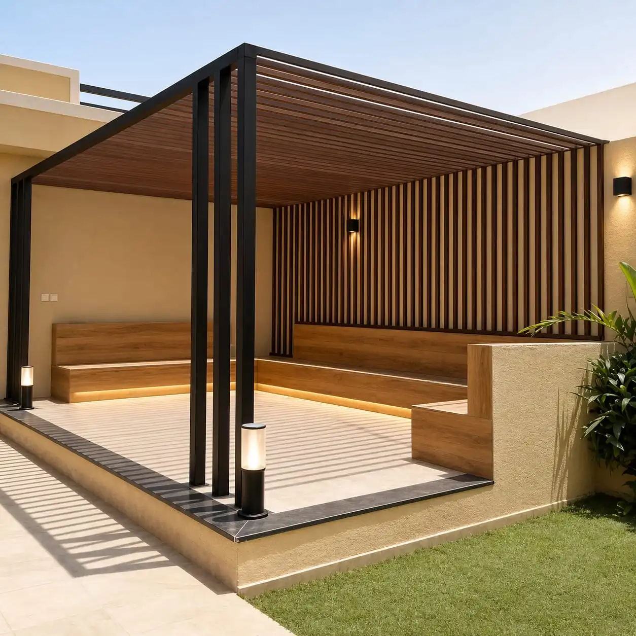 مع ارتفاع درجات الحرارة في جنوب الرياض، أصبحت البرجولات الخارجية عنصرًا أساسيًا في المنازل والفلل، لأنها توفر ظلًا و حماية من الشمس المباشرة.