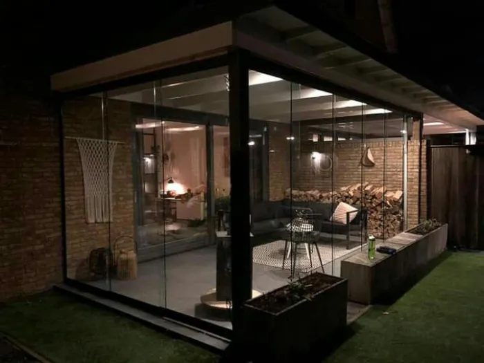 الجلسات الزجاجية الفخمة تضيف لمسة راقية لأي مساحة وتمنح الخصوصية مع توفير العزل الحراري والضوضائي. كما أنها مقاومة للعوامل الجوية بفضل استخدام زجاج مزدوج أو زجاج سكريت المقاوم.