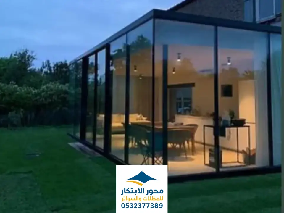 مجالس زجاج للحدائق, تصميم حدائق زجاجية, مجالس خارجية مغلقة, زجاج حدائق مودرن, مجالس زجاجية مقاومة للعوامل الطبيعية, تركيب زجاج خارجي للحديقة.