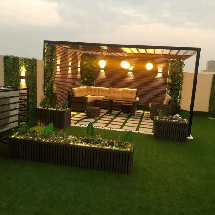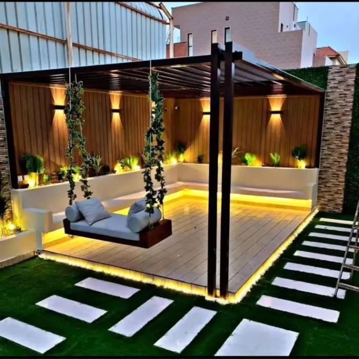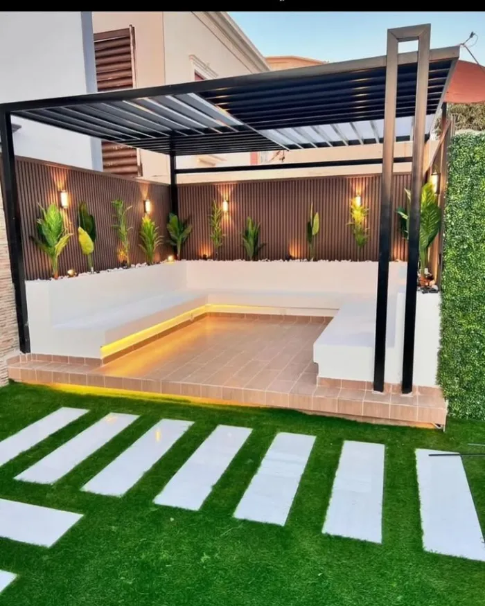 إذا كنت من محبي التفاصيل الفاخرة، فإن برجولات جلسات فخمة هي الخيار الأمثل. يمكن تزويدها بإضاءة مخفية، ستائر جانبية، أو أرضيات خشبية، لتصبح المكان المفضل للاجتماعات العائلية أو المناسبات الخاصة.
