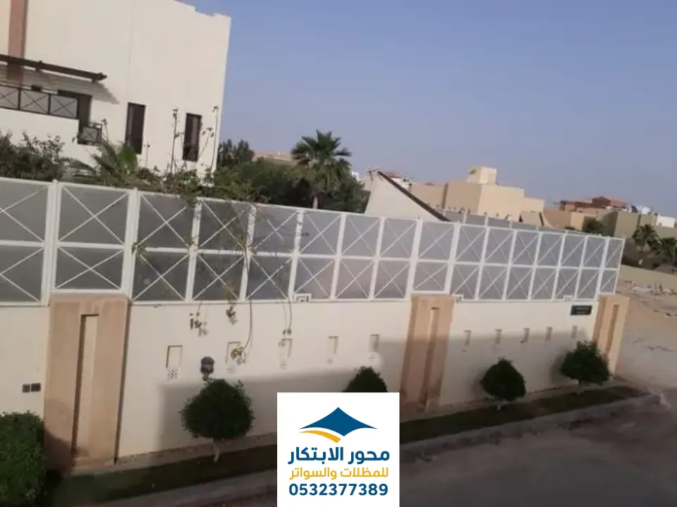 سواتر اللكسان هي من أحدث أنواع السواتر العصرية المصنوعة من ألواح البولي كربونيت الشفاف أو الملون، وتُستخدم لتغطية الحوش، الأسوار، المدارس، والمسابح لما توفره من شكل أنيق وحماية عالية. نقوم في تركيب سواتر لكسان شمال الرياض ونهتم في توفير تصميم سواتر لكسان حديثة بالرياض . ومن أهم مميزات سواتر اللكسان بالرياض مقاومتها العالية للعوامل الجوية مثل الأشعة فوق البنفسجية والرياح والأتربة، إضافة إلى عمرها الافتراضي الطويل مقارنة ببعض الأنواع الأخرى. كما تتوفر بألوان ودرجات شفافية متعددة تتيح للعميل اختيار ما يناسب احتياجاته، سواء للرغبة في عزل كامل أو إضاءة جزئية تضفي إحساسًا بالاتساع والراحة.