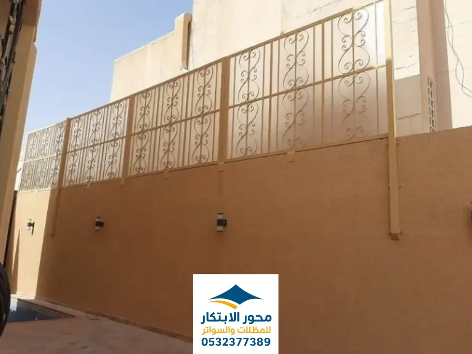 - ومن بين الأشكال الشائعة أيضًا السواتر المقطعة بنوافذ أو فتحات زخرفية التي تسمح بمرور الضوء والهواء مع الحفاظ على الخصوصية، ما يجعلها مناسبة للحدائق، والأسوار الخارجية، والممرات، حيث توفر توازنًا بين الانفتاح والإحكام. ويمكن تصميم هذه الفتحات بأشكال هندسية أو فنية تضيف لمسة ديكورية مميزة تتناغم مع التصميم العام للمكان.