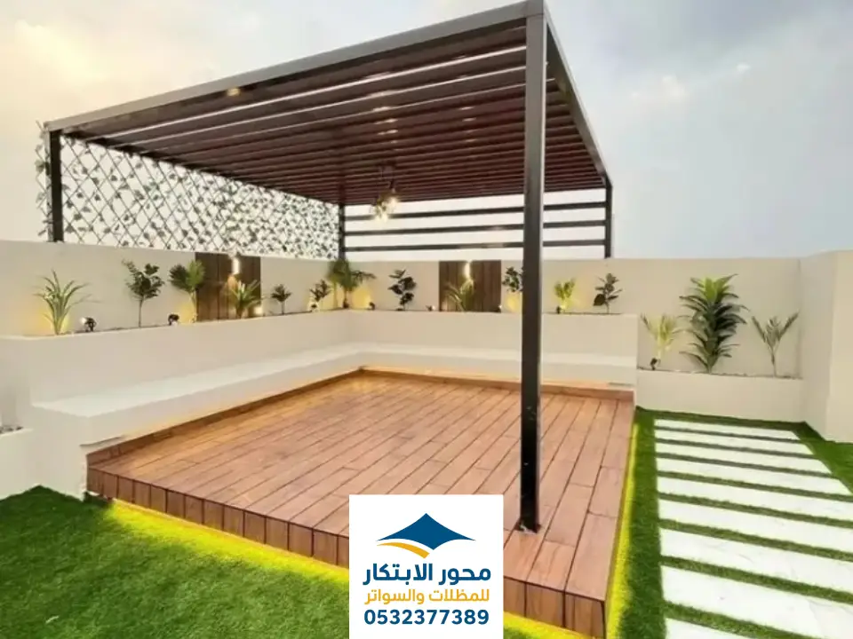 مع الاعتماد على خامات قوية تتحمل الظروف الجوية وتدوم لفترات طويلة. كما تشمل الخدمات تنفيذ جلسات عصرية أو تراثية، تركيب المظلات والسواتر، تنسيق الأرضيات والإضاءة، والاهتمام بأدق التفاصيل لضمان الراحة والفخامة في آنٍ واحد. والنتيجة جلسات خارجية متقنة تعكس ذوق العميل وتحوّل المساحة إلى مكان مثالي للجلوس والاستمتاع في جميع الأوقات.