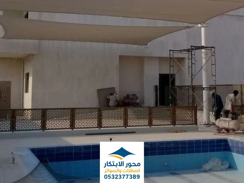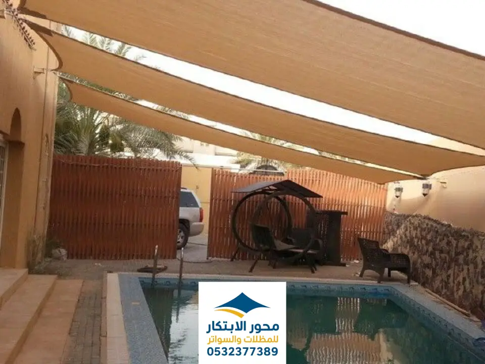 ايضا تساعد على خفض درجة حرارة المياه والمحيط الخارجي، مما يجعل السباحة أكثر متعة وراحة في أجواء الرياض الحارة. إضافة إلى ذلك، يمكن تفصيل هذه المظلات للمسابح توفر مساحة المسبح بحسب الرغبة، مع خيارات متعددة من الألوان والأشكال العصرية، لتكون عنصرًا جماليًا متكاملًا يجمع بين الأناقة والوظيفة العملية.