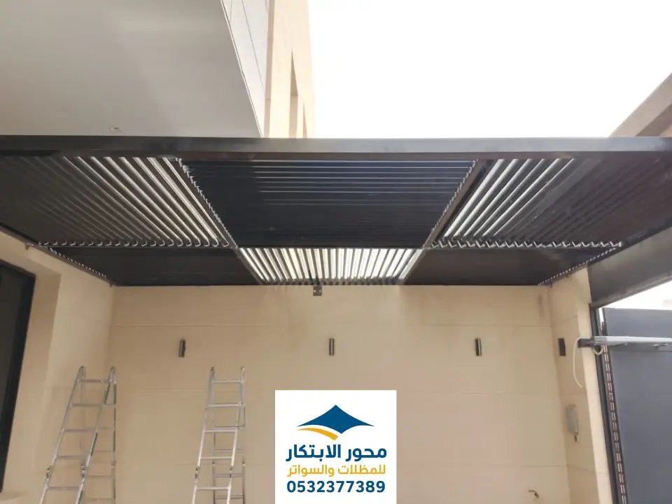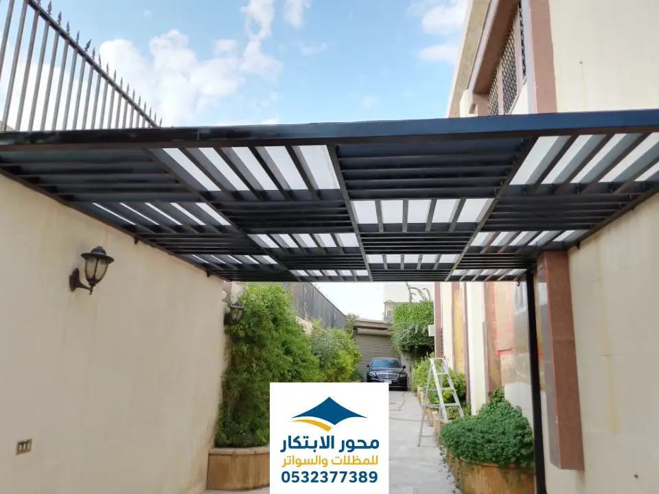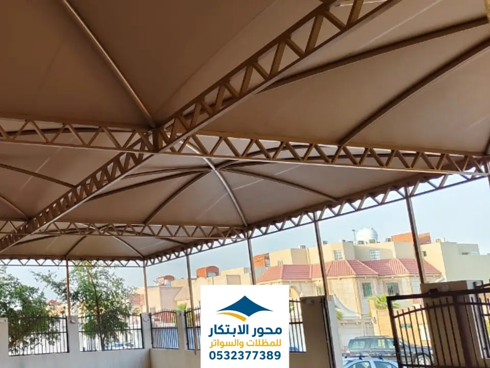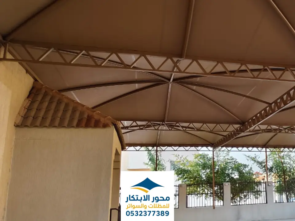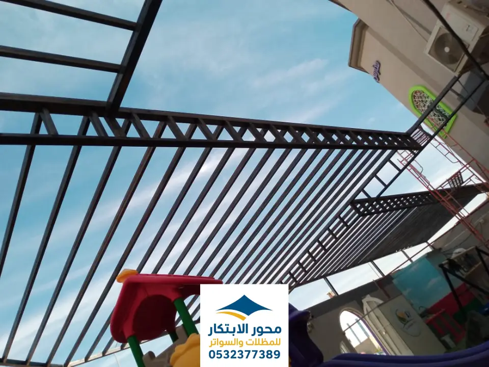 - مظلات حديد للاستراحات (مع تغطية عازلة) كثير من العملاء يبحثون عن مظلات حديد للاستراحات بالرياض بسبب القوة والشكل الفخم وإمكانية تنفيذ ديكورات أو قص ليزر.
