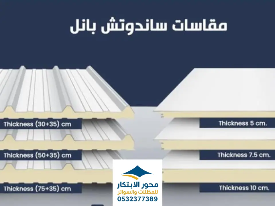 تختلف سماكات الساندوتش بانل حسب مستوى العزل المطلوب: